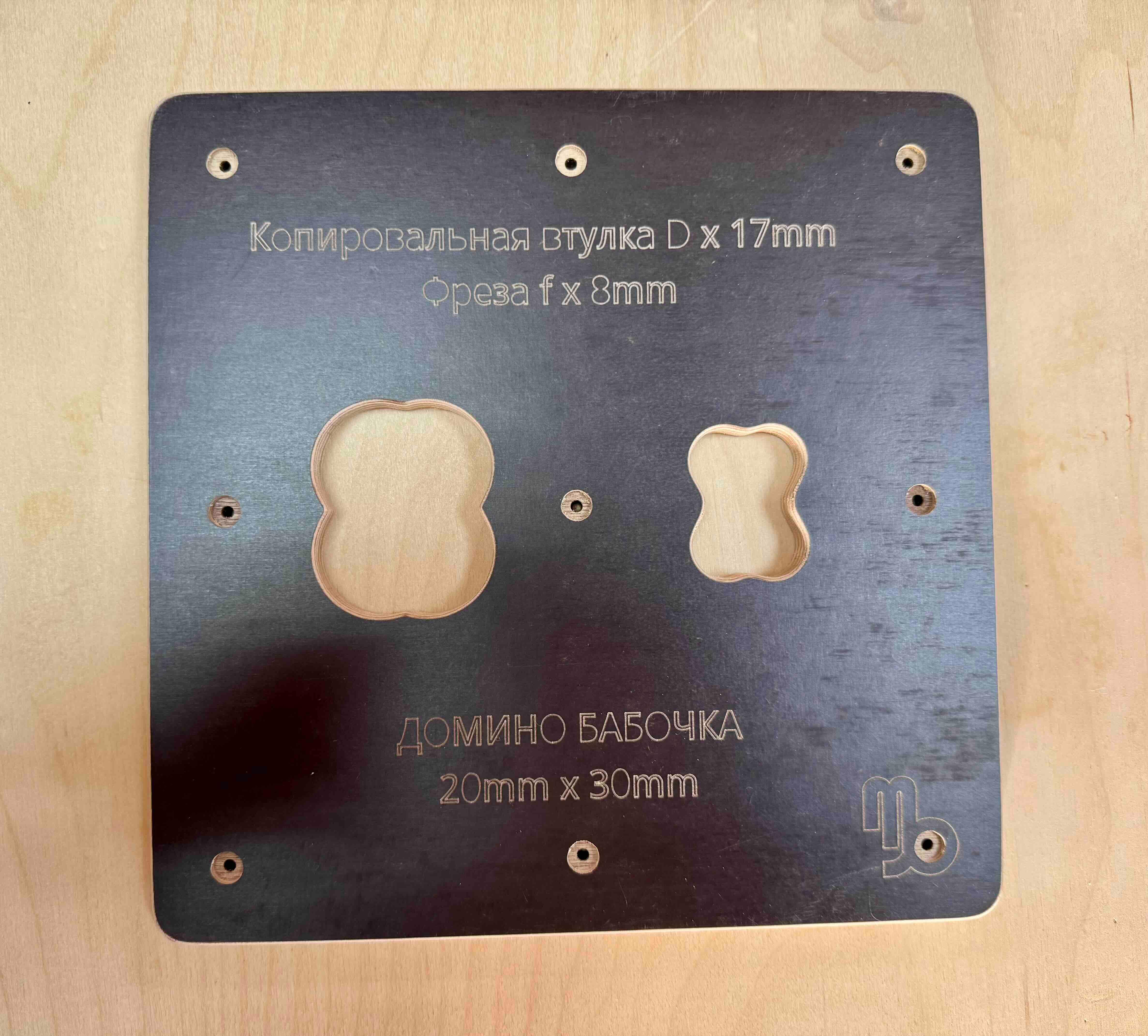 Шаблон Домино-Бабочка Декоративное накладное соединение Отличный помощник для профессионалов так и для начинающих столяров. Есть всегда в наличии или изготовлю под заказ. Шаблон рассчитан под копировальную втулку d x 17 и режущий инструмент фрезу от 8mm. Версия V1 Размер Бабочки-Домино - Копировальная втулка D x 17 f х 8: 1. Бабочка-Домино 20mm х 30mm d x 17, f x 8 Преимущества: 1. Экономия материала 2. Быстрота изготовления врезания паза и изготовления Домино-Бабочки 3. Экономия времени и денег на покупку дорогостоящего оборудования 4. Можно использовать любой ручной фрезер. (фрезер в комплект не входит) 5. Материал шаблона изготовлен из влагостойкой ламинированной фанеры 12мм на ЧПУ. 6. Габаритные размеры шаблона с одним видом домино: Длина - 240mm Ширина - 240mm Толщина - 12mm Вес 360г 7. Крепится варианты: а) струбцинами к заготовке б) двухсторонний скотч в) можно саморезами