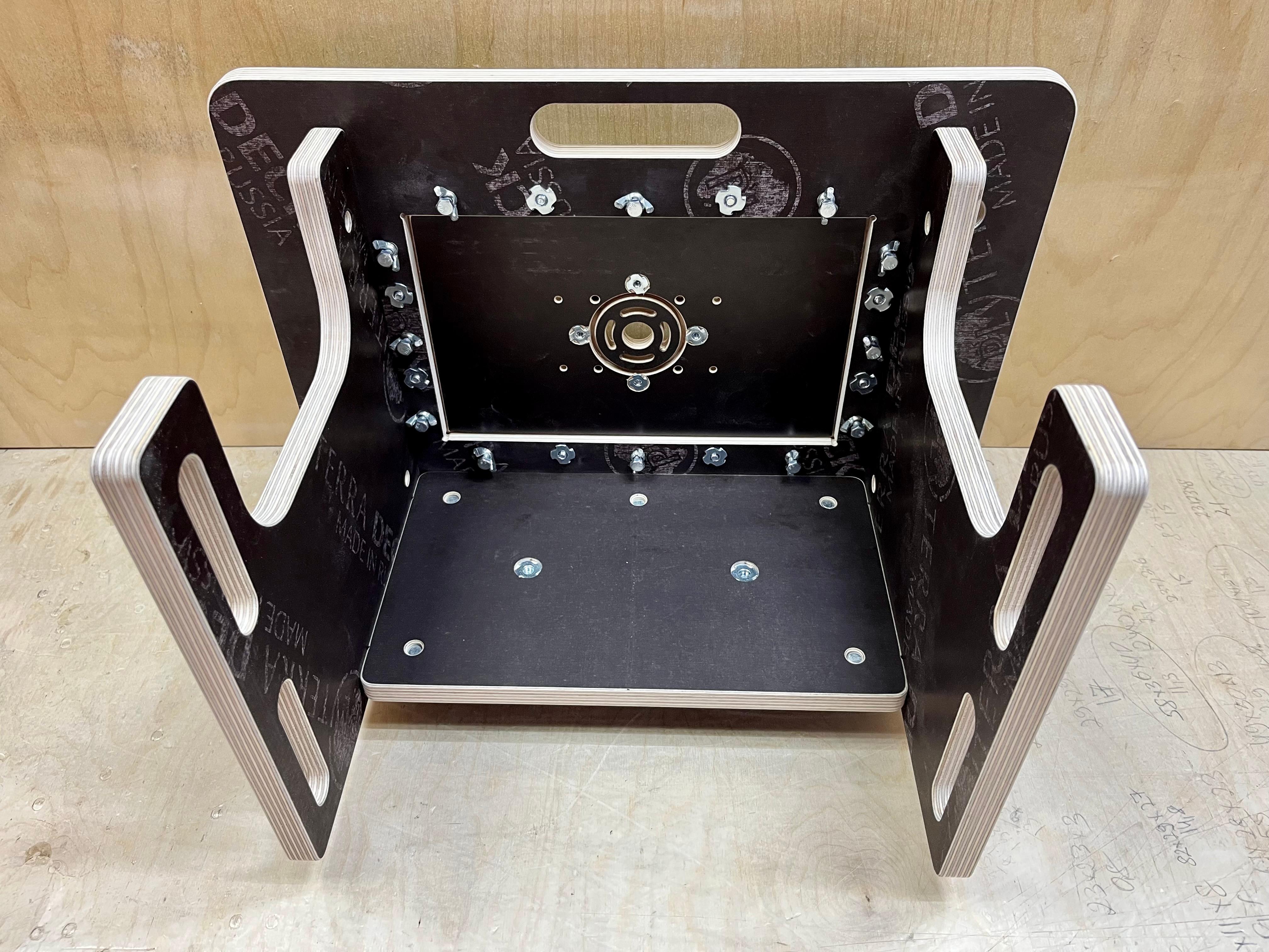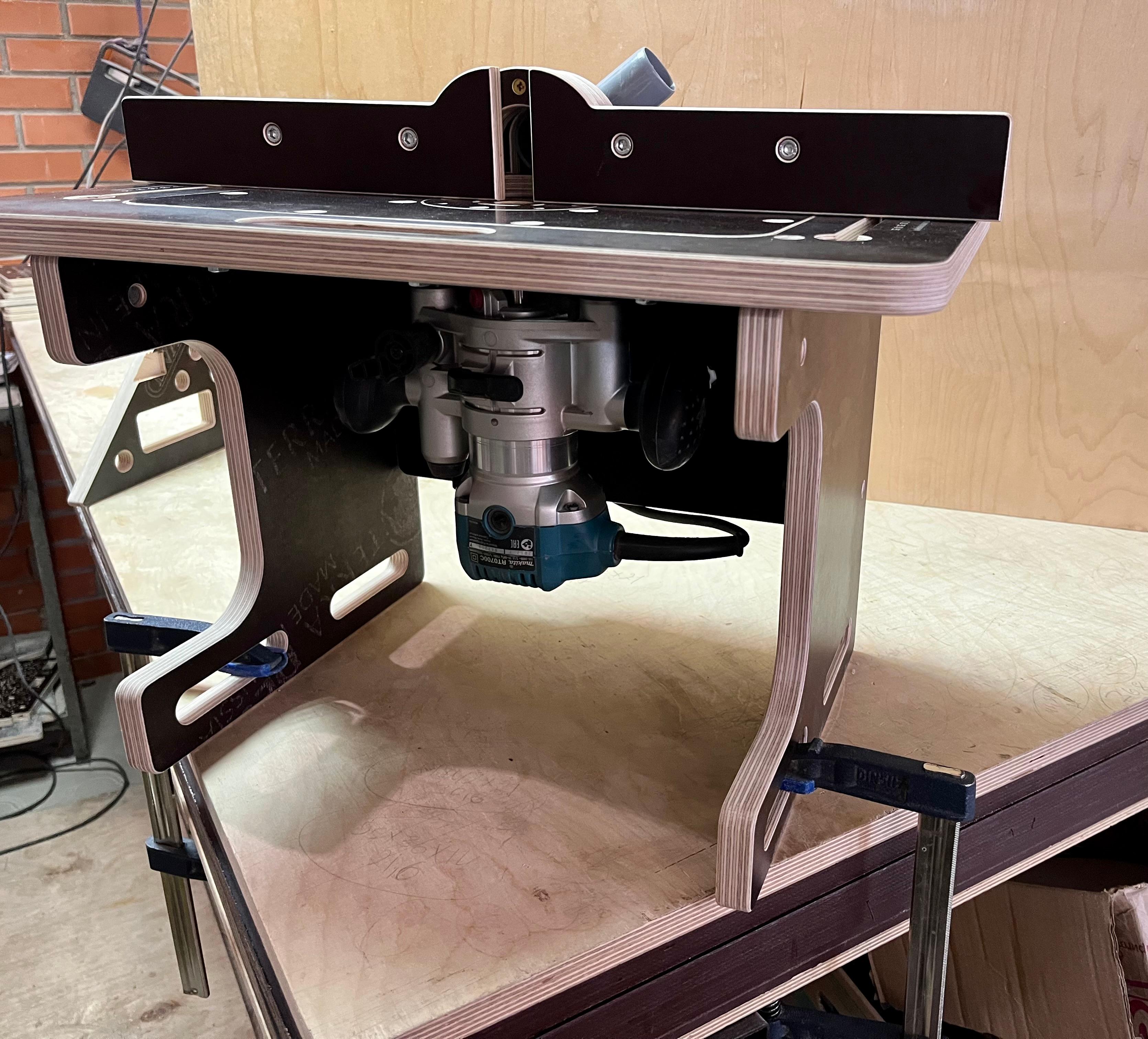 Изготавливаю под заказ 3 - 5 дней по предоплате 500 рублей остальные по факту готовности. Фрезерный стол Предназначен для небольших фрезерных работ как для профессионалов так и для начинающих. Крепится струбцинами к верстку - рабочему столу. Вкладыш с фрезером регулируется по плоскости регулировочными болтами. Вставки сменные под разные задачи, с внутренним диаметром 15 mm, 20 mm, 34 mm, 40 mm, 50 mm. Вкладыши для фрезерного стола по умолчанию разработан под фрезер Макита RT 0700 и TRITON 001. Так же можно переоборудовать под ваш фрезер (нужны размеры подошвы и крепление по центрам вашего фрезера, переоборудование бесплатно.) Можно использовать любой Фрезер. Комплектация: Фрезерный стол - станок 1 шт. Вкладыш под Фрезер 1 шт. Вставки в вкладыш 5 шт. Боковой упор 1 шт. Уголок под 90 градусов 2 шт. ( бонус - подарок). Габариты: Высота 320 mm. Ширина 350 mm. Длина 500 mm. Вес: 6.5 кг. Фрезер, фрезы и струбцины в комплект не входят. Изготовлен из ламинированной влагостойкой фанеры F/F 18mm -12 mm.