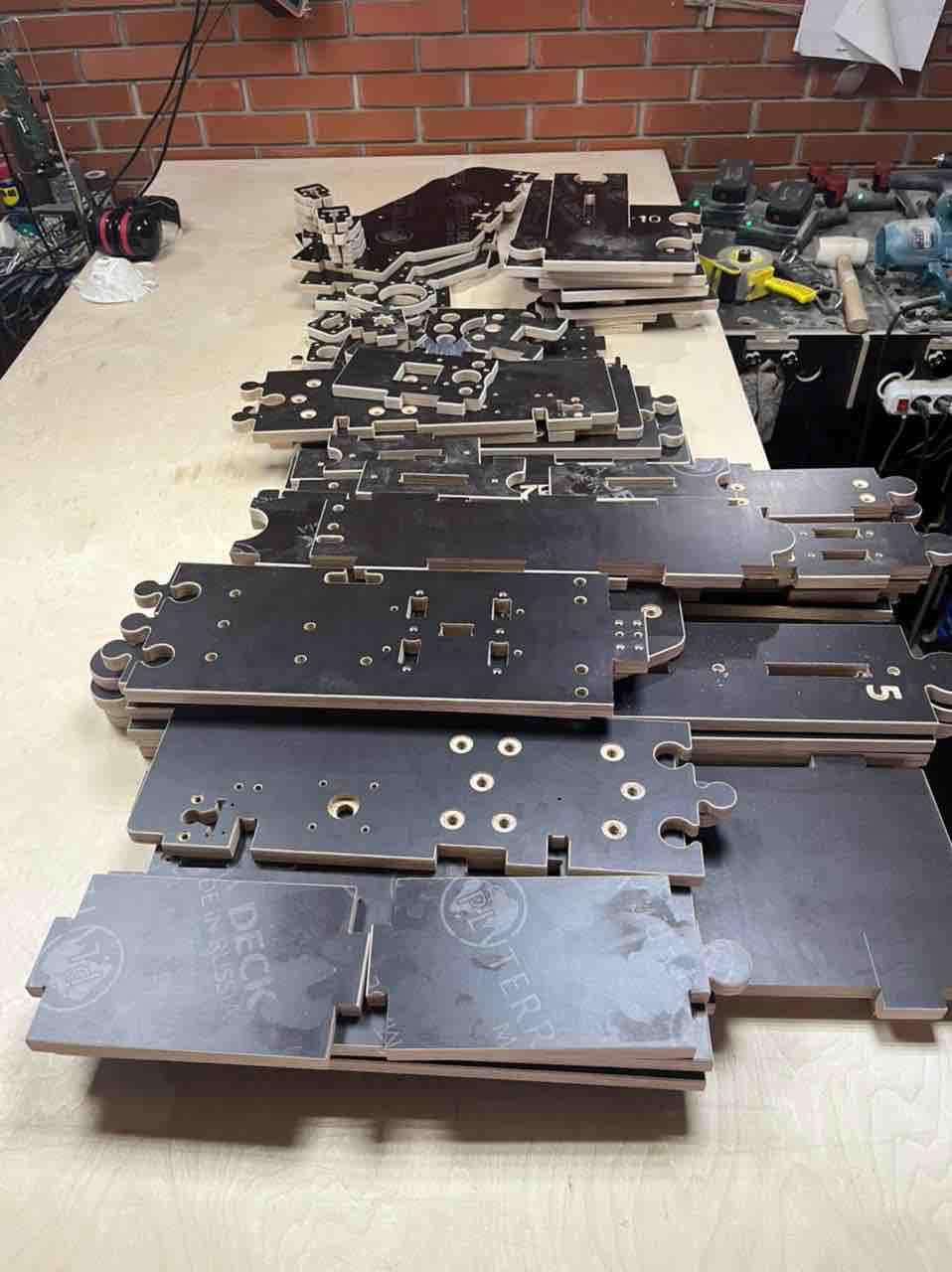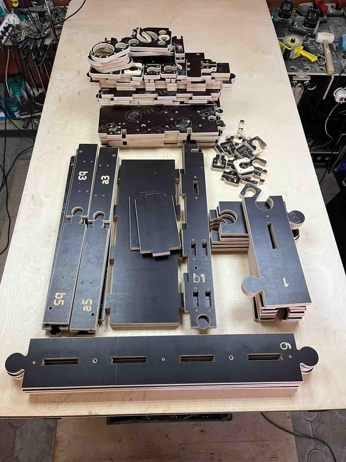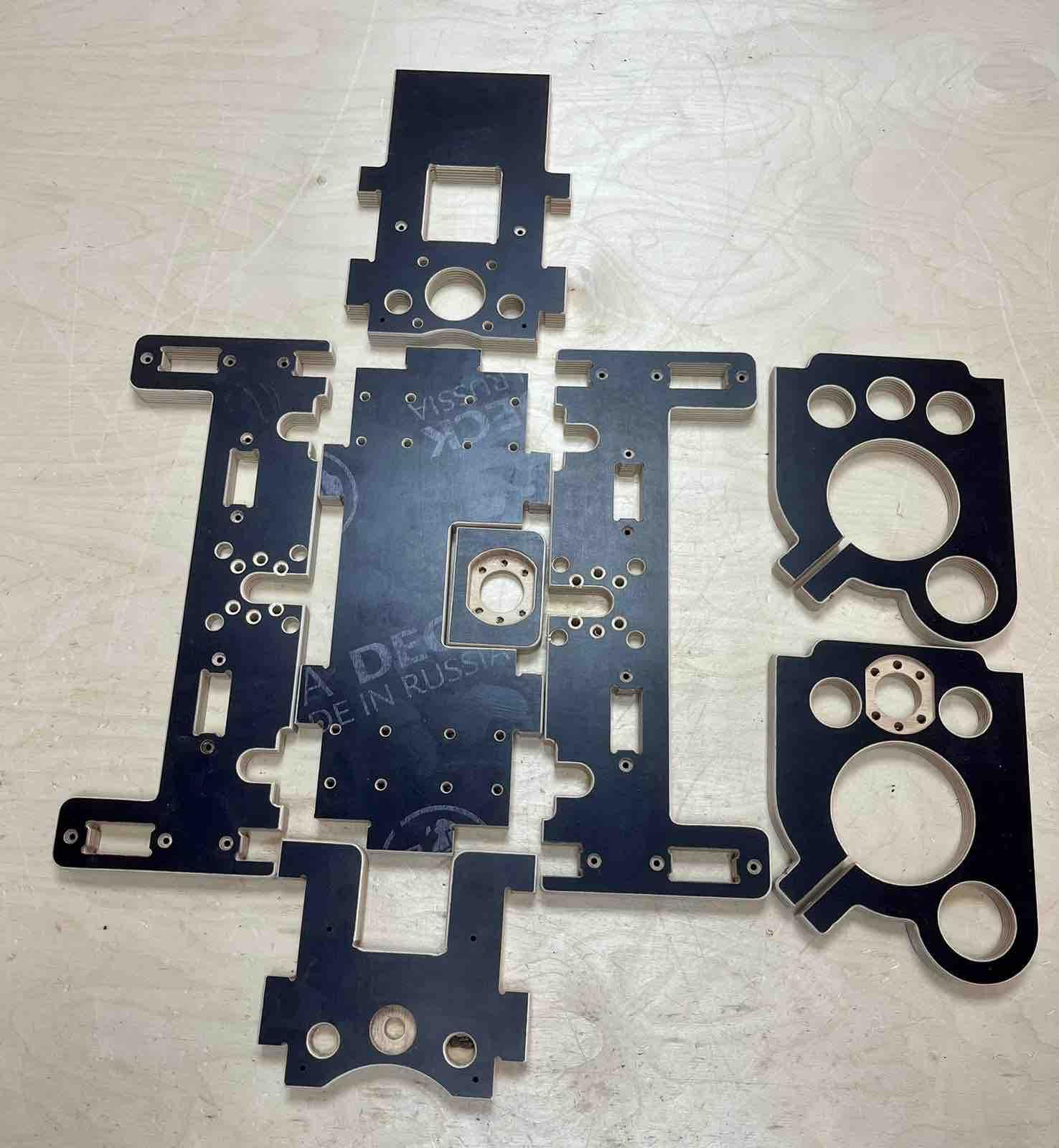 Изготавливаю под заказ порядка одной недели по предоплате 1000 рублей. остальные по факту готовности. Набор каркаса ЧПУ 770 х 1250 х 150 UV Для любителей самостоятельной сборки, предлагаю набор элементов каркаса фрезерного ЧПУ станка из ламинированной (влагостойкой) фанеры F/F18мм (с рабочим полем - 770 х 1250 Удобно работать с листом фанеры шириной 1220 х 2440мм. Все элементы каркаса изготовлены на фрезерном ЧПУ станке. Станок предназначен для 2Д и кроя фрезеровки твердых пород дерева, пластика, фанеры, композитных материалов. Технические характеристики: Рабочая область-поле, по оси 770 х 1250 х 150 UV Максимальная высота заготовки до 100мм. Размер рабочего стола ширина - 1445мм, длина - 1645мм Вес набора каркаса 58кг Станок специально рассчитан под стандартные комплектующие которые легко купить. Механика: ШВП ось Z-1605 ШВП ось X-Y-1610 или 1605 Направляющие Цилиндрический рельс 16мм (ось X-Y) Направляющие Цилиндрические валы 16мм (ось Z) Шаговый двигатель по осям X-Y NEMA23 (57HS8430D8 ток 4,2А, 30 кг), по оси Z (57HS7630D8 ток 3А, 22 кг) По оси Y устанавливается два ШВП-1610 или 1605 и два (Шаговых двигателя 57HS8430D8 ток 4,2А, 30 кг) что увеличивает жесткость и надежность портала. Крепление под шпиндель рассчитан под воздушный и жидкостный шпиндель 1,5 кВт (размеры под шпиндель d-48,52,65,80) В комплекте идёт стружкоотсос (подарок-бонус). Рекомендована рабочая подача 3-10 метров в минуту в зависимости от сложности задач. При покупке набора каркаса даю полный список-перечень комплектующих+консультация по сборке. Комплектующие ЧПУ 770 х 1250 х 150 Фото поэтапной сборки станка 770 х 1250 х 150 UV, можно увидеть и скачать по ссылке: https://yadi.sk/d/cUM3zUsz89rZjg?w=1 Список-перечень комплектующих станка 770 х 1250 х 150 UV, можно увидеть и скачать по ссылке: https://yadi.sk/i/Ul6__cF_O-TStA По всем вопросам пишите или звоните.