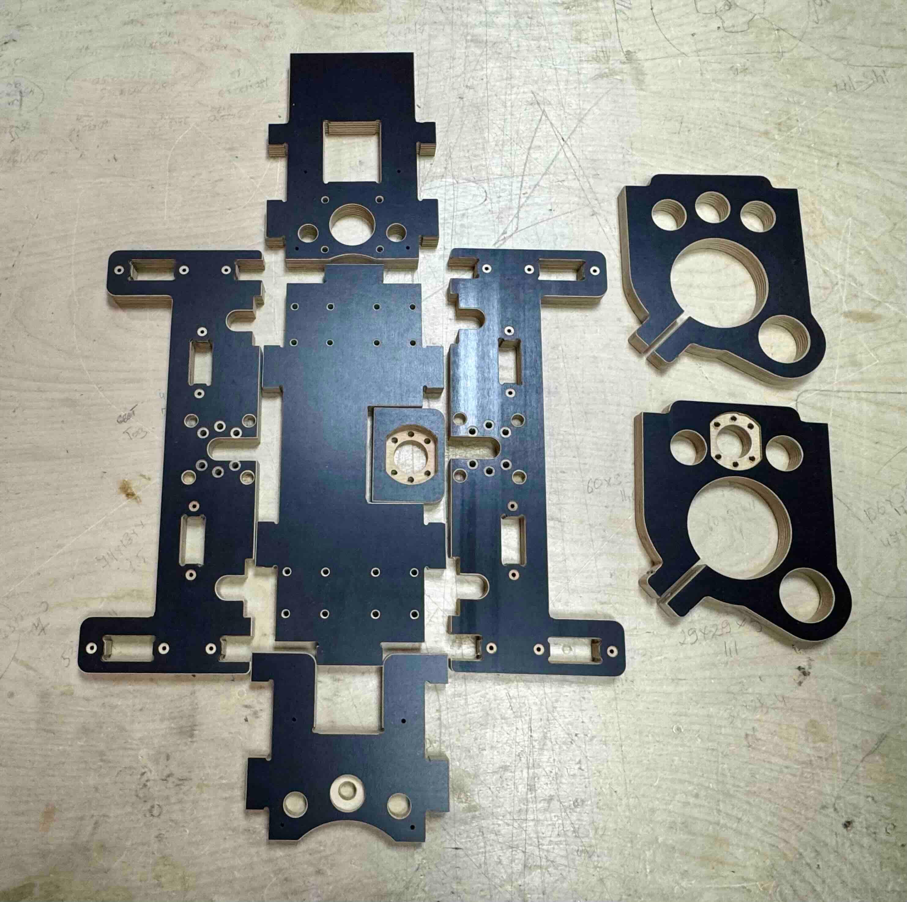 Набор элементов каркаса станка чпу 600 х 1000 х 130 Для любителей самостоятельной сборки, предлагаю набор элементов каркаса фрезерного ЧПУ станка из ламинированной (влагостойкой) фанеры 18мм (с рабочим полем - 600 х 1000 х 130) Все элементы каркаса изготовлены на фрезерном ЧПУ станке. Станок предназначен для 2Д, 3Д фрезеровки твердых пород дерева, пластика, фанеры, композитных материалов. Технические характеристики: Рабочая область-поле, по оси X-600мм Y-1000мм Z-130 Максимальная высота заготовки до 100мм. Размер рабочего стола ширина-748мм, длина-1350мм Вес набора каркаса 22,5кг Станок специально рассчитан под стандартные комплектующие которые легко купить. Механика: ШВП ось Z-1605 ШВП ось X-Y-1610(скоростные) Направляющие Цилиндрический рельс 16мм (ось X-Y) Направляющие Цилиндрические валы 16мм (ось Z) Шаговый двигатель по осям X-Y NEMA23 (57HS8430D8 ток 3А, 22 кг), по оси Z (57HS7630D8 ток 3А, 18 кг) По оси Y устанавливается два ШВП-1610 и два (Шаговых двигателя 57HS8430D8 ток 3А, 22 кг) что увеличивает жесткость и надежность портала. Крепление под шпиндель рассчитан под воздушный и жидкостный шпиндель 1,5 кВт (размеры под шпиндель d-48,52,65,80) В комплекте идёт стружкоотсос (бонус). При покупке набора каркаса даю полный список-перечень комплектующих+консультация по сборке каркаса. Перечень комплектующих для полной сборки: https://yadi.sk/i/hza1AQZ_HuwunA Ссылка на видео: https://disk.yandex.ru/i/sDFND97guPcS5g