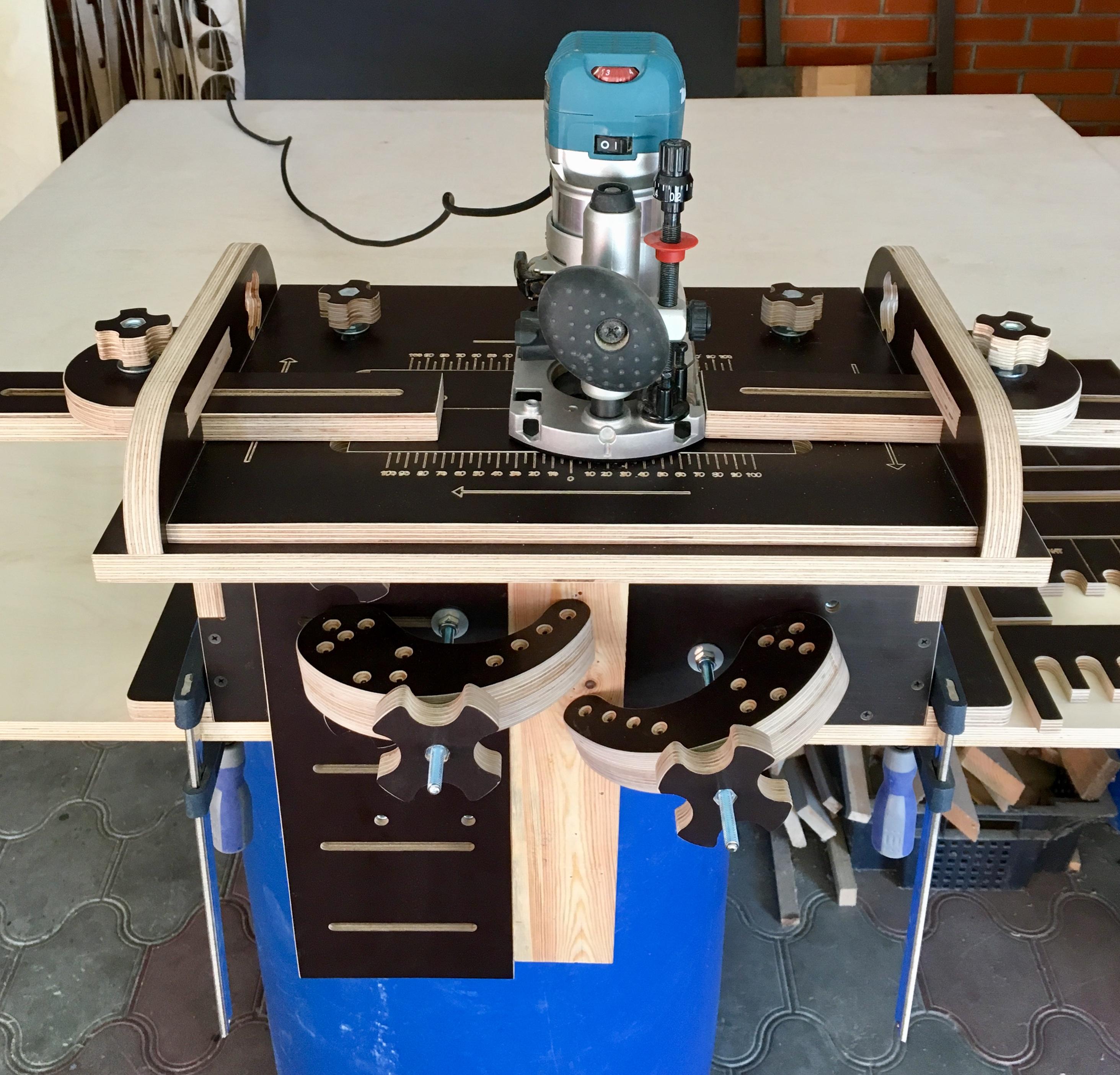 Изготавливаю под заказ 2 - 3 дня по предоплате 500 рублей остальные по факту готовности. Приспособление для изготовления шиповых соединений универсальное, многофункциональное, ящичный шип, полу-шип, паз-шлиц, домино, шкант-дюбель. Отличный помощник для профессионалов так и для начинающих столяров. Для тех кто хочет себе такое приспособление, но не имеет возможности себе сделать. По просьбе клиентов, данное приспособление было изготовлено и взято с западных сайтов. Перед покупкой рекомендую ознакомится с этим приспособлением, если кому будет интересно а может сделает сам, там есть чертеж. ссылка: http://woodarchivist.com/656-shopmade-multi-joint-jig/ Преимущества: Экономия материала. Быстросъёмные шаблоны 8 шт. можно использовать заготовки до 200 х 50 мм. 1. Шаблон для сквозного соединения ласточкин хвост L-28 mm. Шаблоны ласточкин хвост состоит из двух шаблонов, где используется две фрезы: пазовая или спиральная фреза f-10 mm, и фреза ласточкин хвост f-(ЭНКОР-9317). 2. Шаблон для ящичных шипов f-10mm, заготовки до 200mm и толщиной до 30mm максимум). 3. Шаблон для врезания шкантов 4. Шаблон для быстрого врезания паза по установленным размерам. 5. Шаблон для изготовления полу-шипа по установленным размерам 6. Шаблон для быстрого врезания паза под f-10mm (паз 30mm-10mm). 7. Шаблон для быстрого выреза полу- шипа под f-10mm (шип 10 mm-30 mm). Используется копировальная втулка 16 mm или 17 mm. На выбор. Экономия времени и денег на покупку дорогостоящего оборудования. Использование копировальной втулки d-16 mm или 17 mm. На выбор. Можно использовать любой ручной фрезер, (фрезер и копировальная втулка в комплект не входит). Материал приспособления изготовлен из влагостойкой ламинированной фанеры 18-12mm на фрезерном ЧПУ станке. Габаритные размеры в собранном виде: Длина - 600mm Ширина - 300mm Высота - 304mm Вес 10кг Крепится струбцинами к рабочему столу