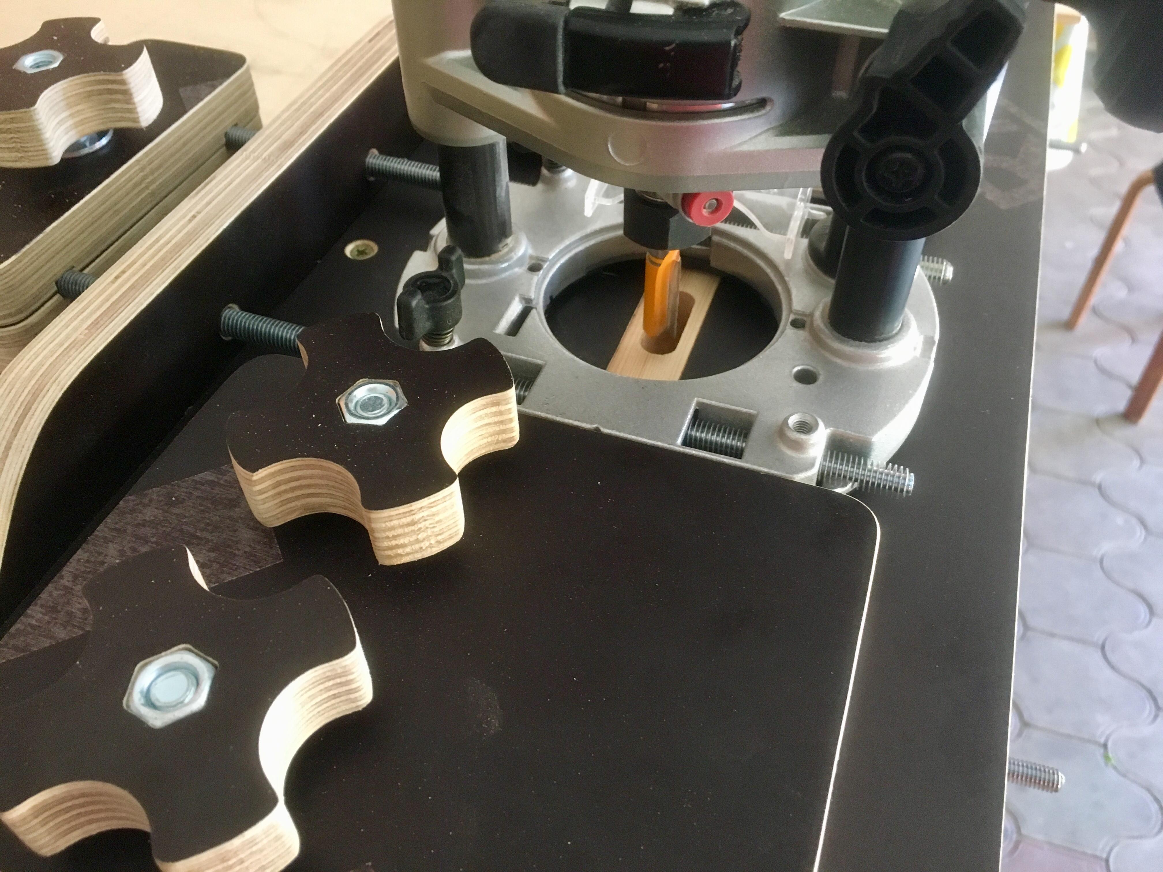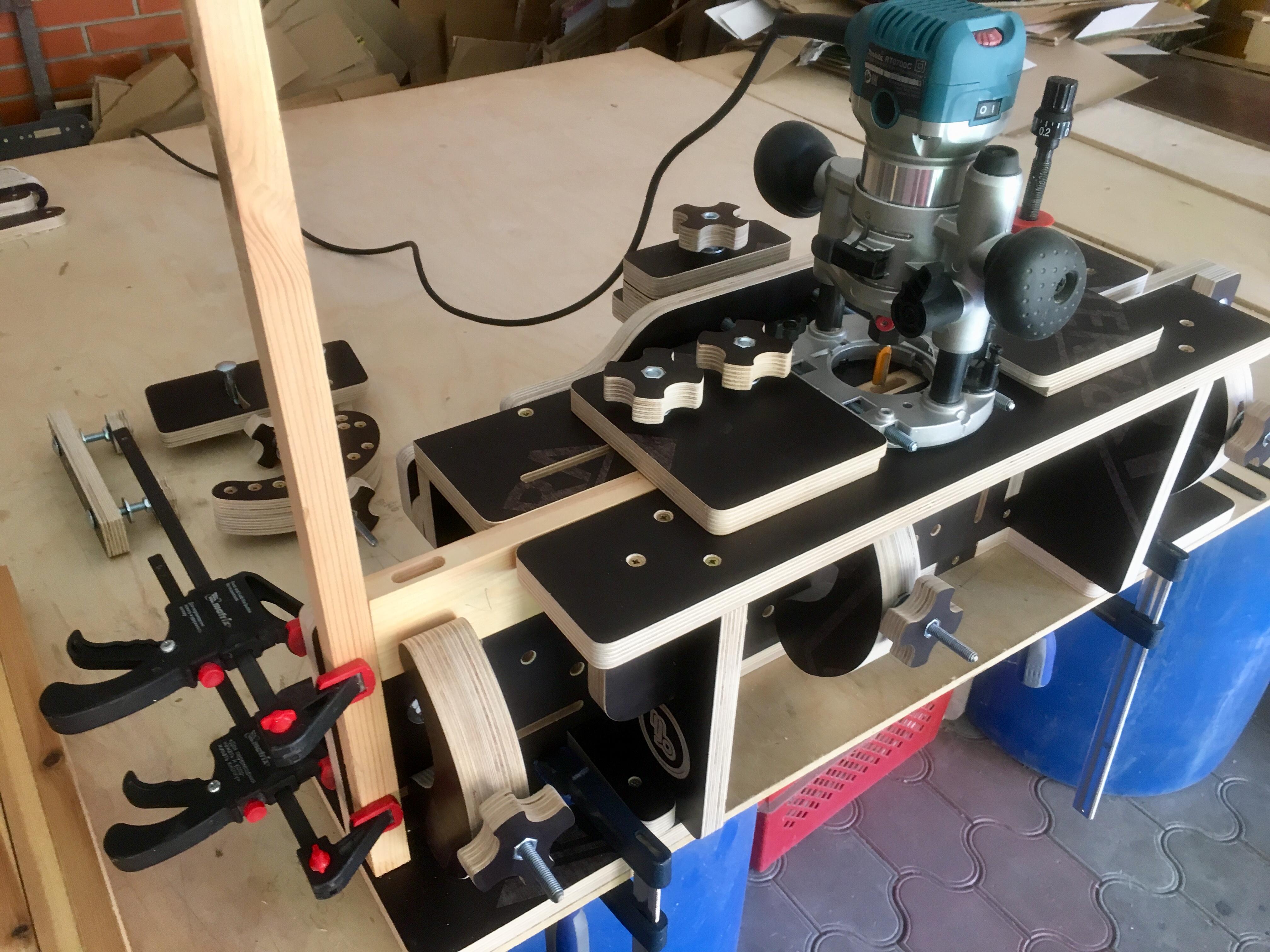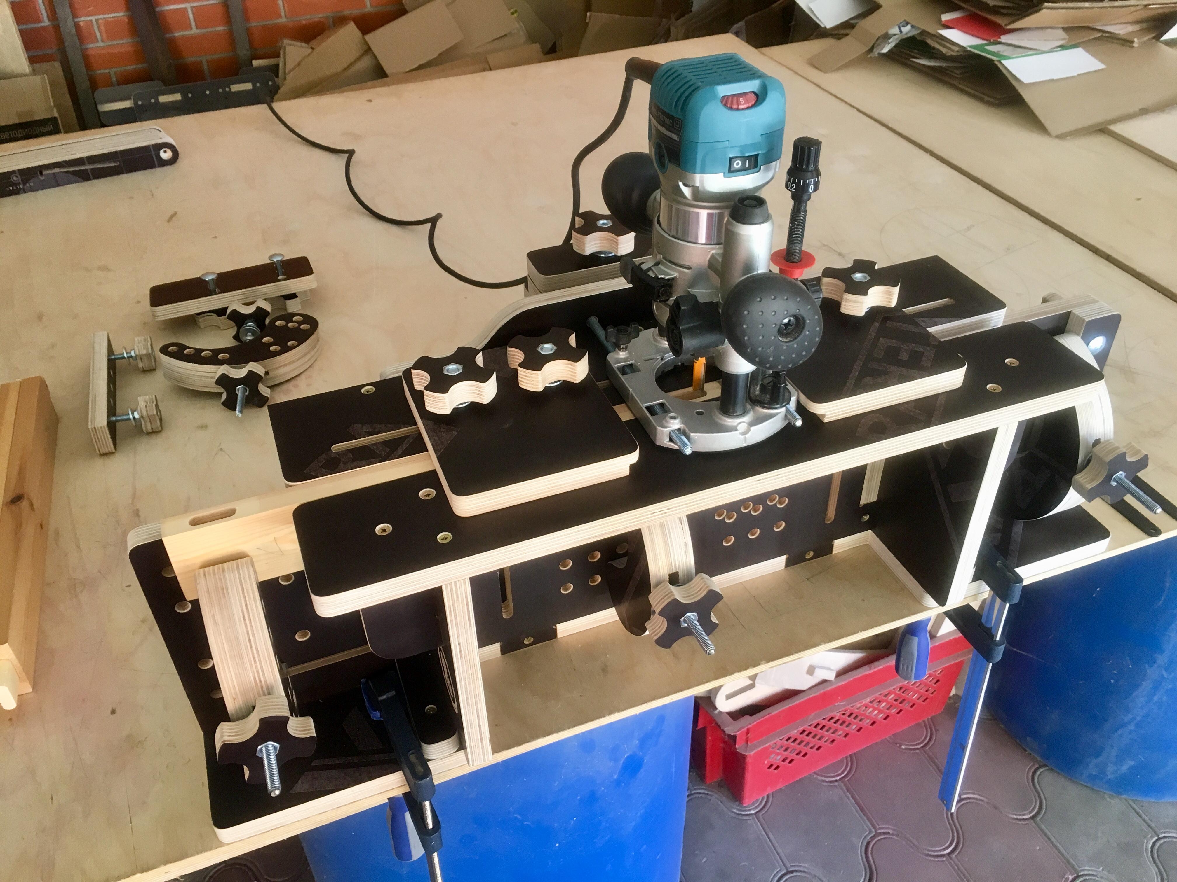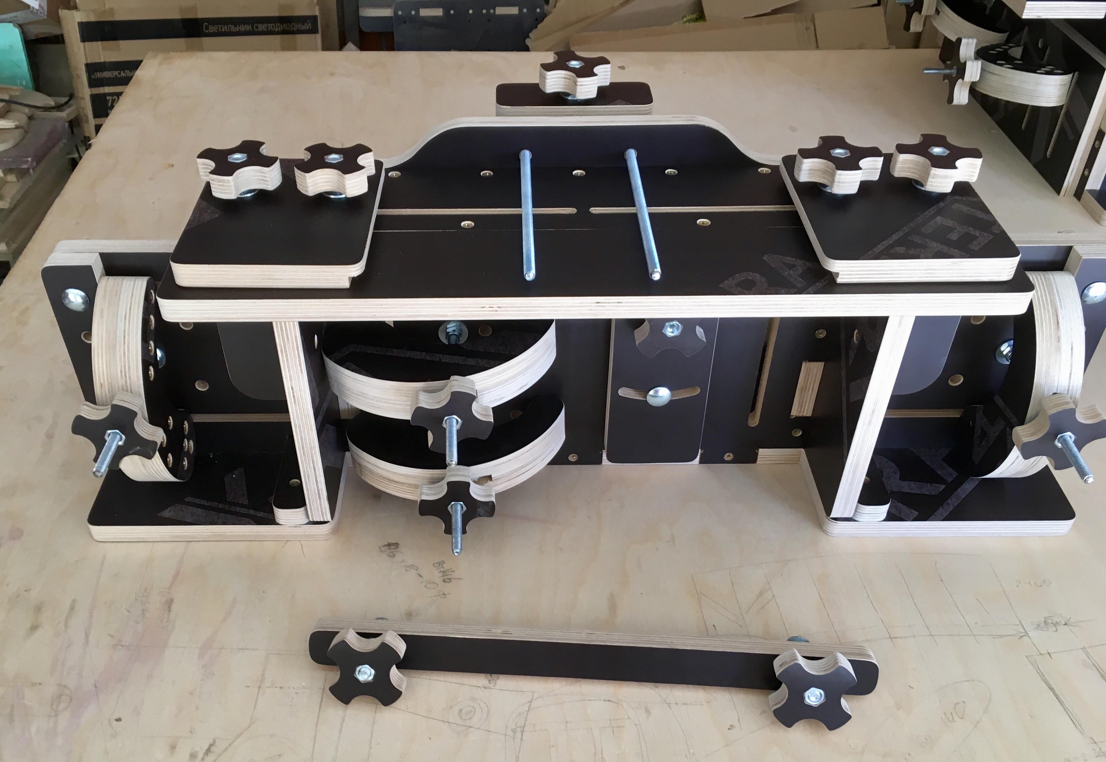 Изготавливаю под заказ 3 - 5 дней по предоплате 500 рублей остальные по факту готовности. Приспособление для выборки паза для вставного шипа домино V4 Предназначено для быстрого фрезерования-выборки паза для вставного шипа домино, можно использовать как по горизонтали так и по вертикали и под углом до 70 градусов. Отличный помощник для профессионалов так и для начинающих столяров. По просьбе клиентов в данную модель внесены дополнительные изменения: увеличена база где добавлены дополнительные зажимы и боковые упоры с левой и правой стороны (для удобства быстрого крепления заготовок), уменьшены боковые упоры для фрезера и выбрана четверть чтоб не забивалась стружка, уменьшены все прижимные барашки, увеличилась площадь прижима струбцинами к рабочему столу. Преимущества: 1. Экономия материала 2. Быстрота изготовления врезания паза 3. Экономия времени и денег на покупку дорогостоящего оборудования 4. Использование заготовки 100 х 100mm в длину все зависит от высоты вашего стола, в моем случае использую максимум 1200mm. 5. Можно использовать любой ручной фрезер. (фрезер в комплект не входит) 6. В новой версии приспособления поставляется модернизированный усиленный параллельный упор под ручной фрезер, при заказе нужно уточнить размеры по центрам, разработано под несколько видов штанг и по центрам: 1. Штанга 8мм по центрам 84мм. 2. Штанга 12мм по центрам 115мм. 3. Штанга 9,5мм по центрам 100мм. 4. Штанга 10 мм, по центрам 85 мм, высота от плоскости до штанги 6 мм., до центра 11 мм, (Makita RP0900). И высоту от плоскости до штанги Материал приспособления изготовлен из влагостойкой ламинированной фанеры на ЧПУ. Габаритные размеры в собранном виде: Длина - 800mm, Ширина - 250mm, Высота - 235mm. Вес 15кг. Крепится струбцинами к рабочему столу. P.S В связи обновлением приспособления и других элементов цена может меняться.